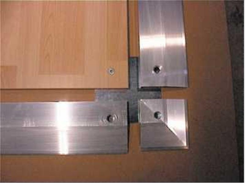 Ainsi, une platine de jonction relie quatre planchers, deux planchers et deux profilés, ou encore un plancher, deux profilés et un coin.